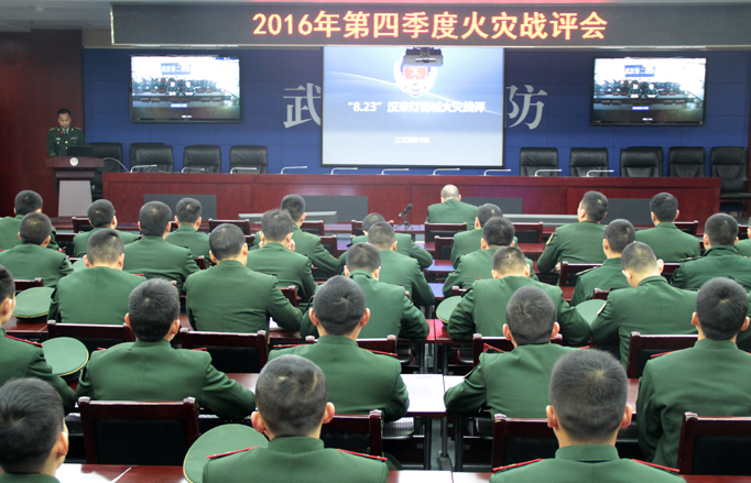 2月4日下午,武汉支队召开典型火灾战评会。支队副参谋长杨威、司令部相关科室和各中队中队长及供水班班长在主会场参会,中队除勤务以外全体官兵在各单位分会场参会。