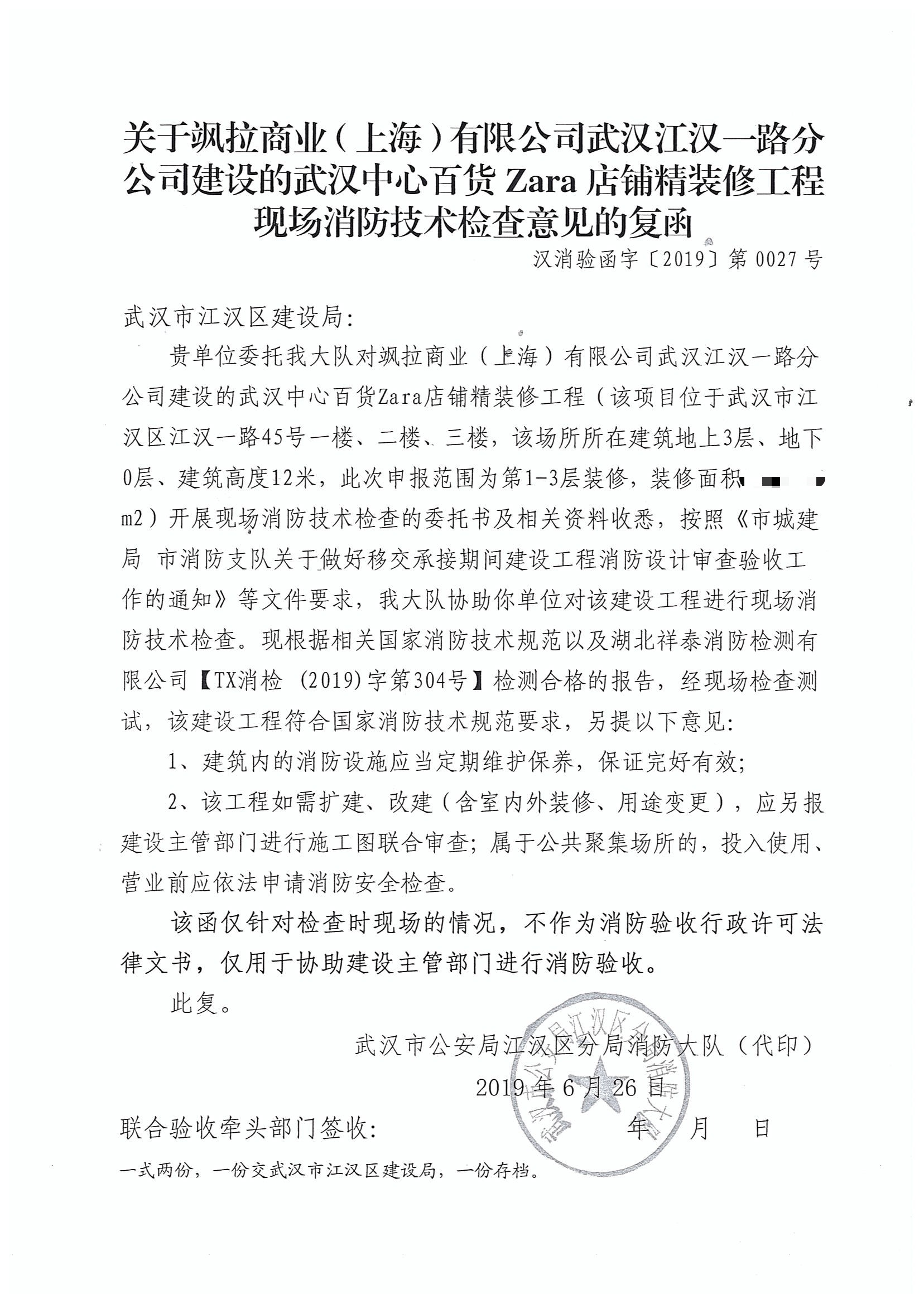 此次为ZARA武汉中心百货店铺精装修工程项目