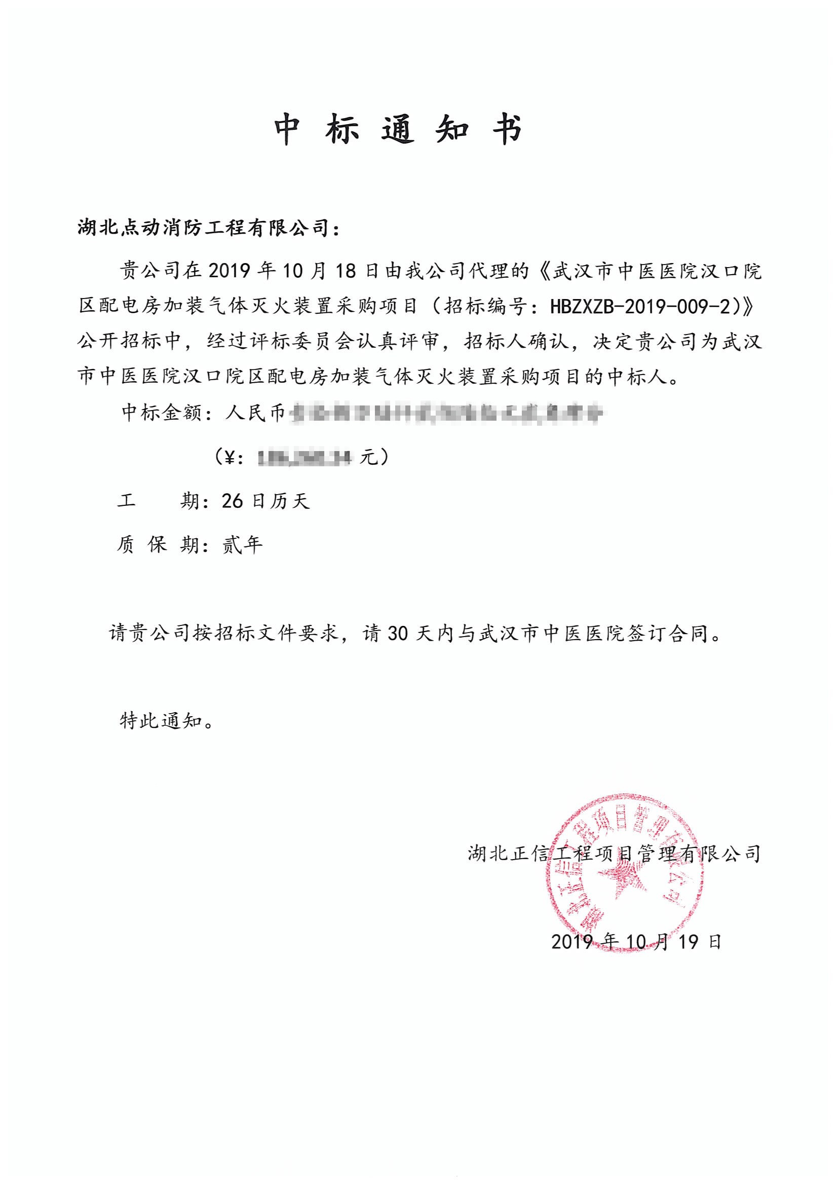 此次为武汉市中医医院汉口院区配电房加装气体灭火装置采购项目